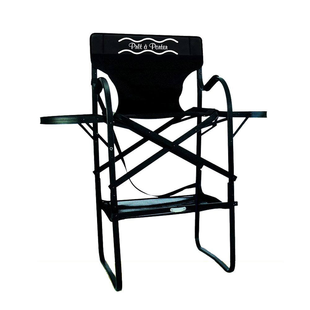 Silla profesional con accesorio para poner tus brochas y productos de maquillaje.